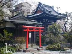 山門をくぐって(門の下の ミニ鐘楼を撞いて)境内へ。